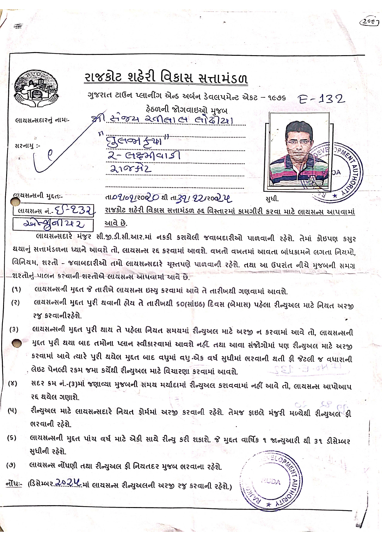 Laxmiwadi street no : 2 , "Shree Tulja Krupa ",near kapad mill compound ,Rajkot 2